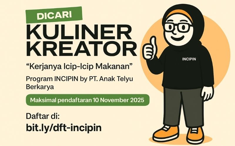 PT. Anak Telyu Berkarya (ATBE) membuka kesempatan bagi kamu yang kreatif, doyan makan, dan aktif di media sosial untuk bergabung dalam program KULINER KREATOR – INCIPIN.